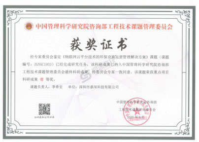 經(jīng)工程技術課題管理委員會評審,中國管理科學研究院咨詢部審批,由我司總經(jīng)理李希宏負責主持的《物聯(lián)網(wǎng)云平臺技術的環(huán)保設施運營管理解決方案》重點課題榮獲科研成果壹等獎!