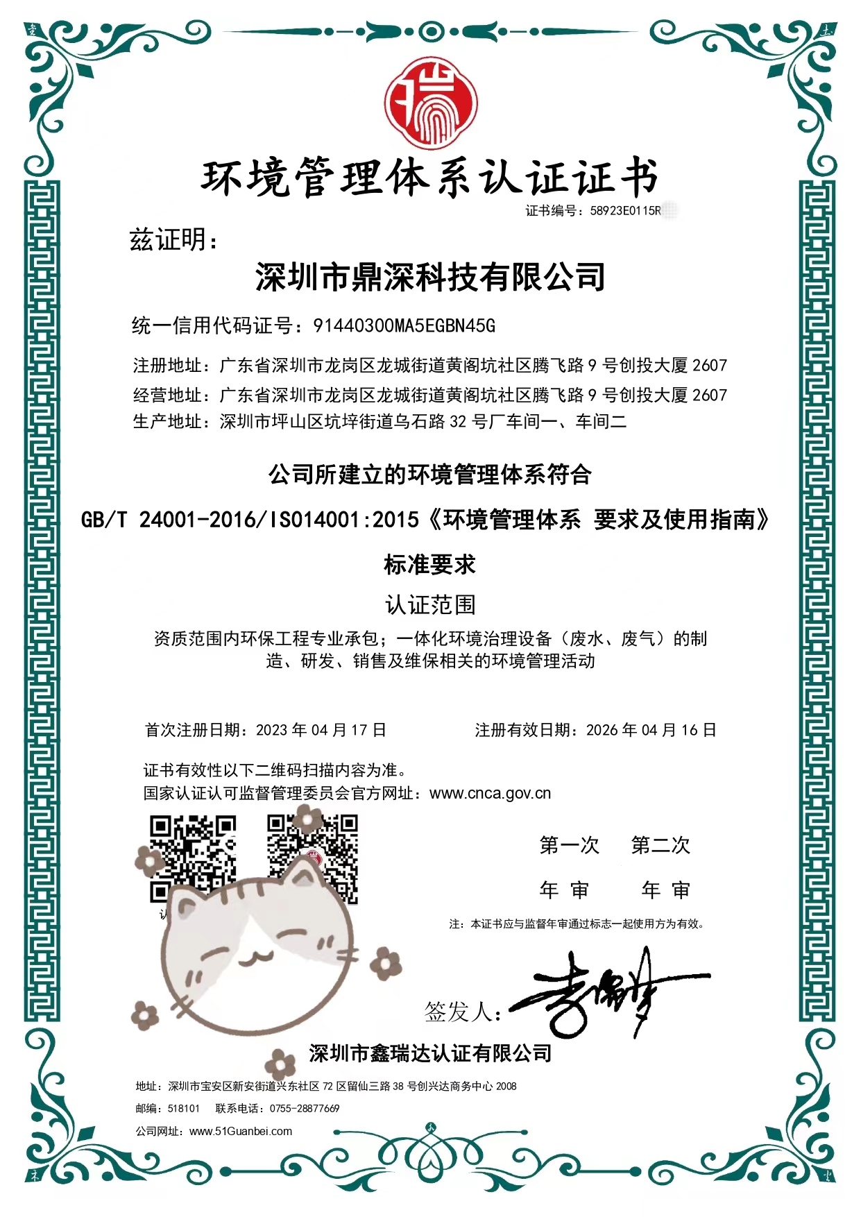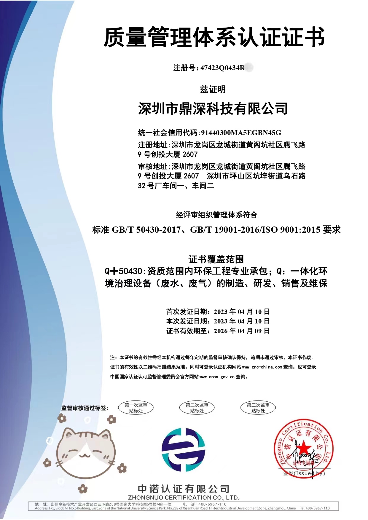 深圳市鼎深科技有限公司,成立于2017年4月,注冊資金為1200萬元,是一家集環(huán)境工程設(shè)計及施工總承包,環(huán)保設(shè)施第三方運營托管,環(huán)保裝備研發(fā)制造,技術(shù)咨詢等板塊的綜合型環(huán)保高新技術(shù)企業(yè),由具有十年以上行業(yè)經(jīng)驗豐富的技術(shù)人員和施工人員組成,公司在環(huán)境治理及環(huán)保設(shè)施第三方運營托管等方面積累了豐富的經(jīng)驗和技術(shù)能力。